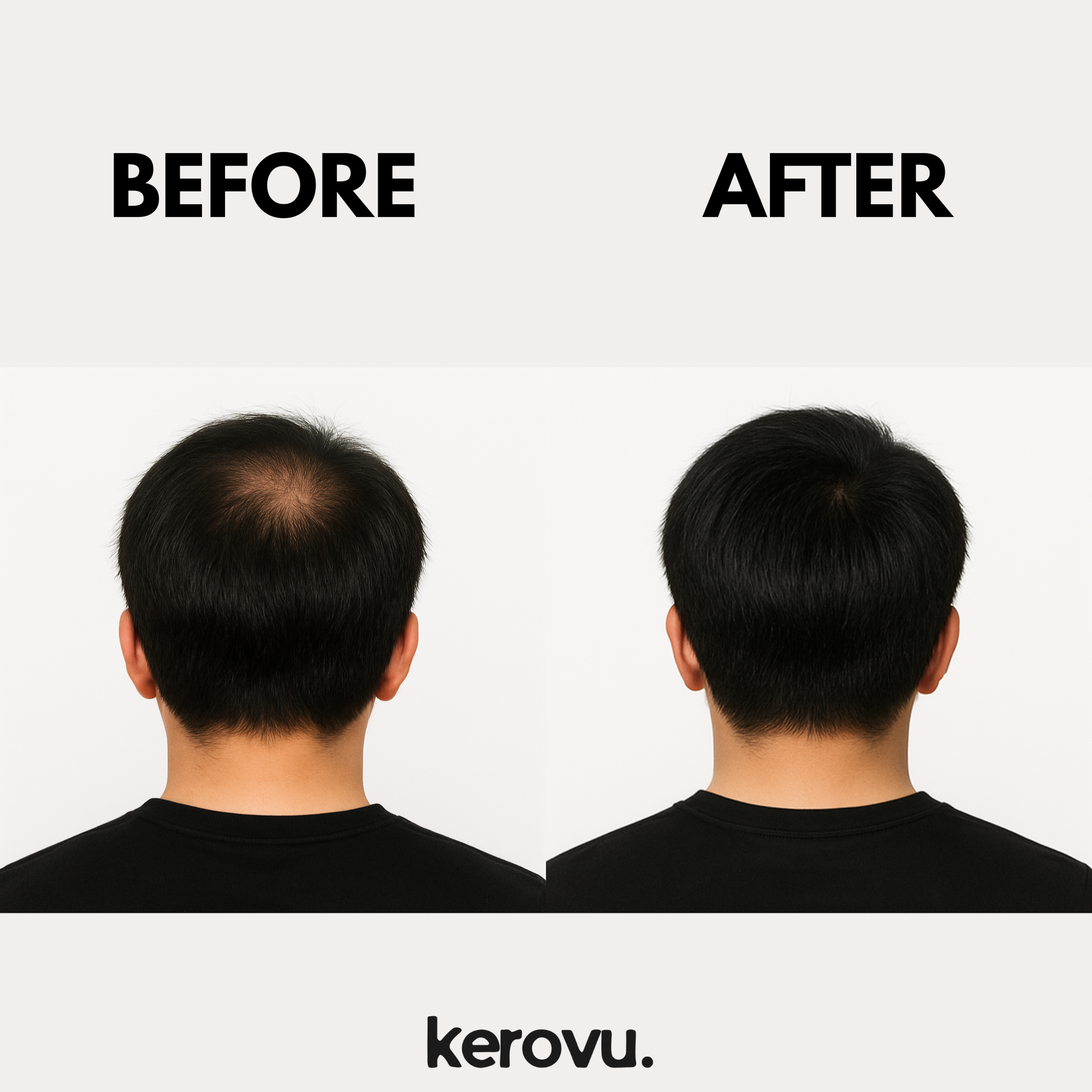 Kerovu fibers are made with cosmetic-grade ingredients commonly used in hair and skin products. They sit on your hair, not your scalp, and wash out with shampoo. If you have very sensitive skin, we recommend doing a quick patch test first.